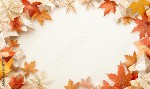 A beautiful arrangement of autumn leaves in vibrant shades of orange and yellow, creating a stunning frame. Perfect for seasonal decor, crafts, or to evoke the feeling of fall.
