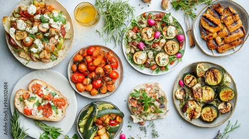 A beautiful array of assorted vegetable dishes laid out flat, highlighting the fresh ingredients and colorful presentation for a delightful meal