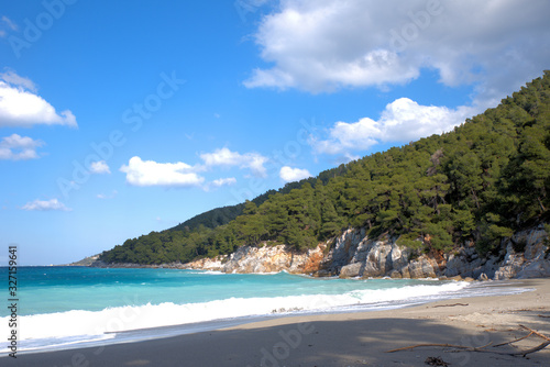 A beautiful beach on the island of Skopelos, Greece . her name is Kastani beach