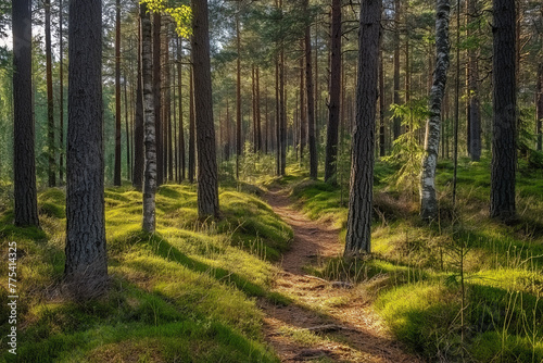 a beautiful green pine forest for a computer wallpaper, or for the texture of the view outside the window in a visualization