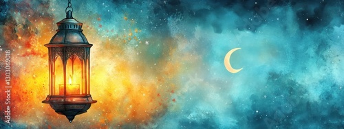 A Beautiful Lantern Illuminated Against a Stunning, Colorful Night Sky Featuring Blue and Orange Hues