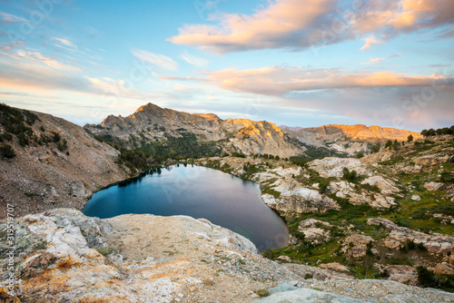 A beautiful sunrise over Liberty Lake as seen from Liberty Pass in the Ruby Mountains near Elko, Nevada.