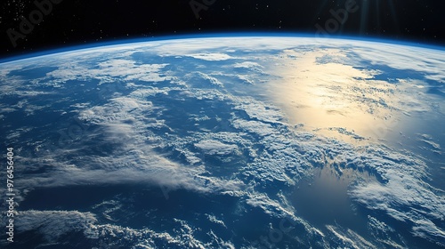 A beautiful view of sunrise over Earth, with swirling galaxies in the background