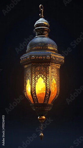 A beautifully designed lantern with intricate patterns, emitting a warm glow.