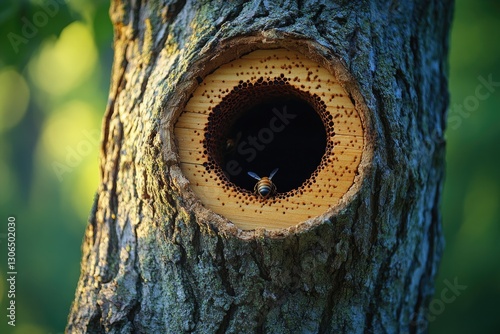 A bee is found inside a hollow in a tree, providing a cozy shelter and protection