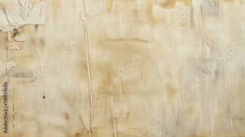 a beige aged linen texture on paper, scrapbook paper, distressed edges. Old vintage paper texture banner background. Light brown paper