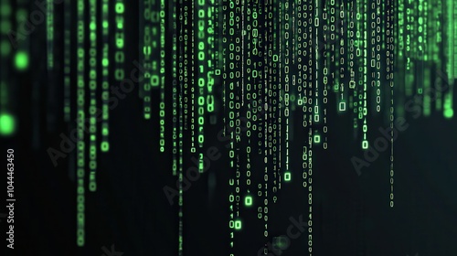 A binary code stream cascading down in green digits on a black background, evoking the iconic "Matrix" aesthetic, perfect for tech, hacking, or coding themes