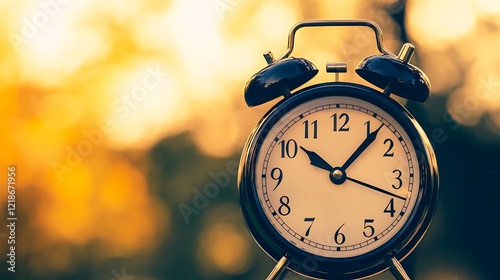 A black alarm clock with a white face showing the time of 10:30