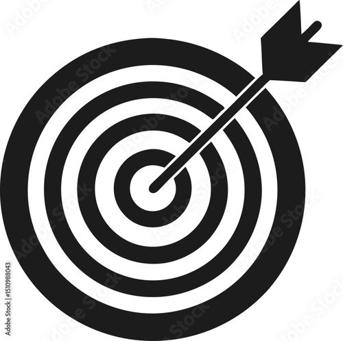 A black and white illustration of a target bullseye with an arrow precisely hitting the center representing achievement