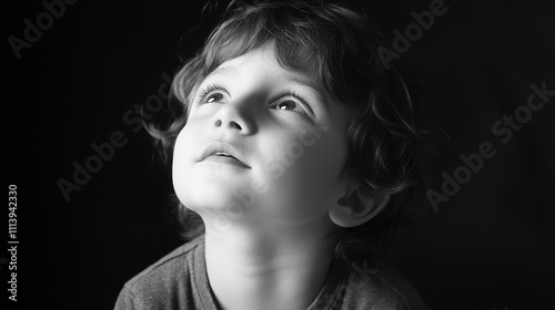 A black and white photo of a little girl looking thoughtfully at the camera.