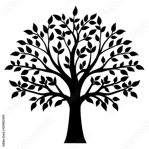 A Black and White Silhouette of a Lush Tree with Full Foliage