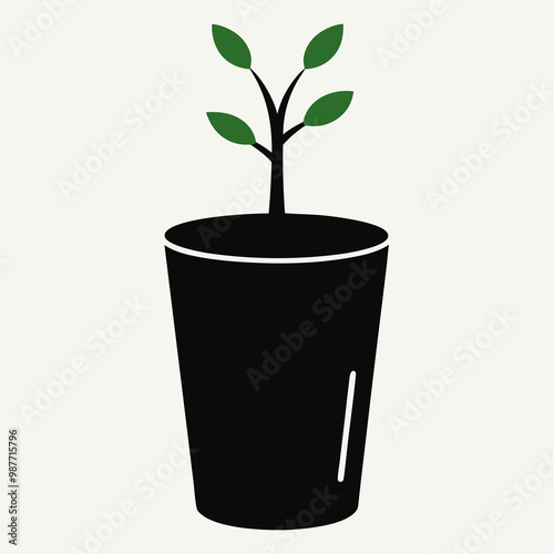A black cup with a tree vector illustration.