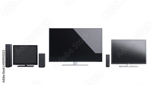 A black flat screen television is on the left side of a white background.on a transparent background. PNG format