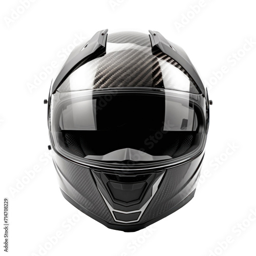 A black motorcycle carbon integral crash helmet isolated on a transparent background.