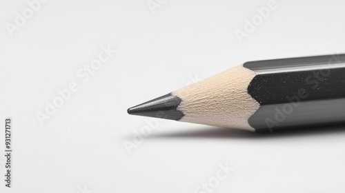 A black pencil resting on a piece of paper. Suitable for office and education concepts. with a focus on the pencil and the notebook