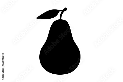 a black silhouette of a pear with a leaf black, fruit, icon, leaf, pear, silhouette , Generative art.