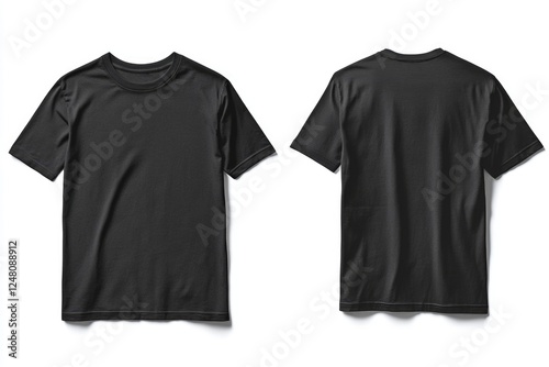 A black t-shirt displayed on a clean white background, perfect for showcasing designs or branding