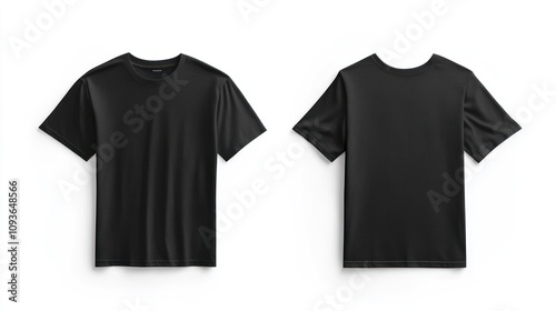 A black t-shirt mockup with a white background, shown in a front and back view.