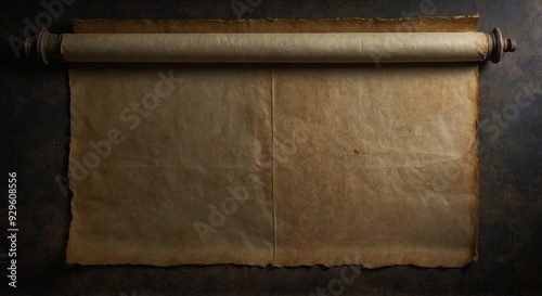 A blank ancient paper scroll with ample copy space for text, perfect for historical or vintage-themed projects. The scrolls aged texture adds an authentic touch to any design.