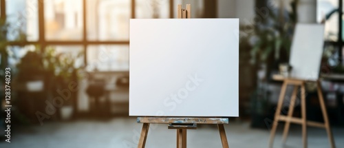 A blank canvas rests on an easel in a sunlit studio, awaiting the artist's touch, symbolizing endless possibilities and untapped creativity.