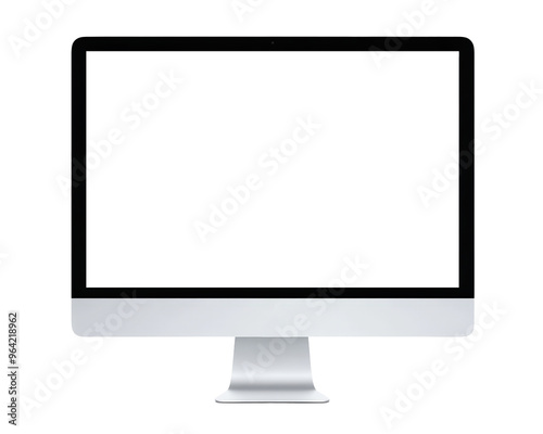 A blank desktop computer monitor isolated on a transparent background, representing modern technology and minimalism.