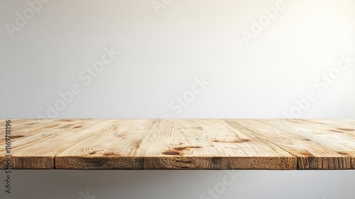 A blank, empty wooden table top ideal for showcasing products, with a clean and unobtrusive surface that highlights items placed on it.