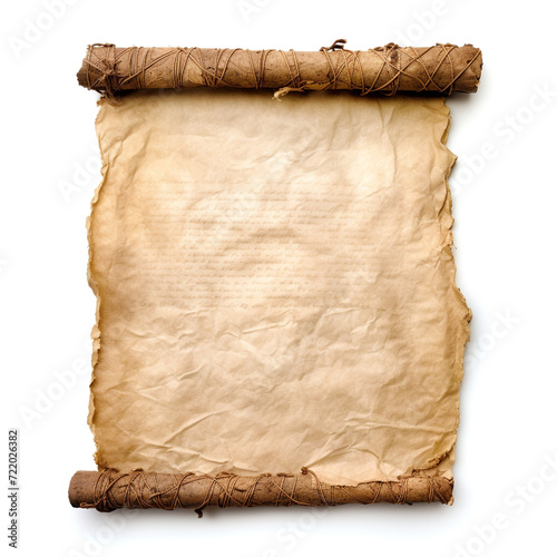 a blank piece of parchment tattered from old age with rolled sides on the left and right сreated with Generative Ai