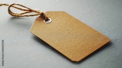 A blank price tag made of kraft paper with a string, placed on a clean background, leaving space for custom text