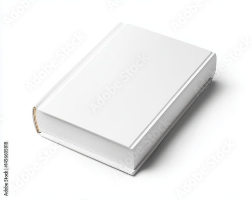 A blank white book, lying flat on a white background. The cover is smooth and solid, showcasing a simple, rectangular design, with a subtle gold edge. The book's format appears standard