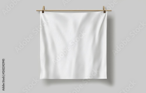 A blank white indoor and outdoor fabric and scrim vinyl banner is available for print design presentation, as shown in a 3D render illustration