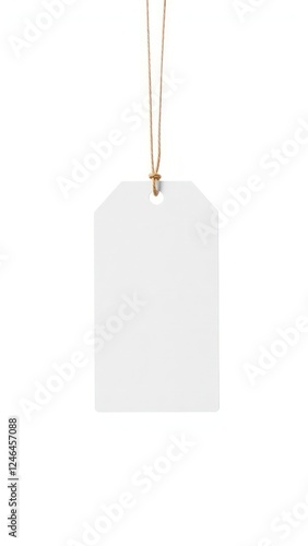 A blank white tag with a string, perfect for labeling items or gifts in various creative projects. Isolated on white background.