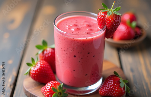 A Blend Of Fresh Strawberries Mixed With Yogurt Creates A Refreshing And Healthy Red Smoothie Drink.