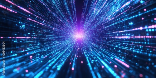a blue and pink light burst in the middle of a dark background