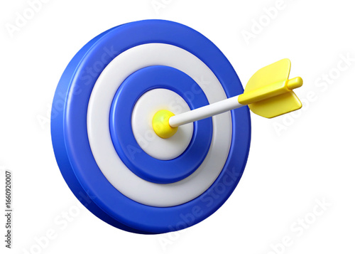 A blue and white circular target is depicted, with a single dart perfectly hitting the bullseye, symbolizing accuracy and successful aiming.