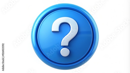 A blue circular emblem featuring a stylized question mark symbol, often associated with curiosity and inquiry, isolated on a white background.