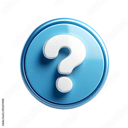 A blue circular icon with a white question mark in the center on a transparent background. The icon has a glossy, three-dimensional appearance with a smooth