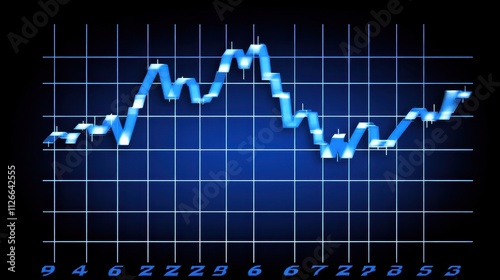 A blue line graph depicting fluctuating data trends over time on a grid background.