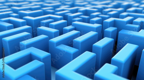 A blue maze made of cubes. The cubes are all different sizes and are arranged in a way that creates a maze-like pattern. The maze is very intricate and detailed