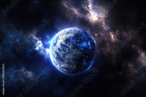 A blue planet floating in the vastness of space