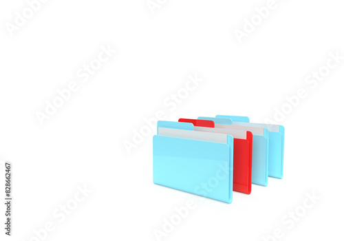 A blue, red folder with papers and files. 3d rendering on the topic of computer, office, work, interface, technology, applications, business, data. Minimal, modern style. Transparent background.