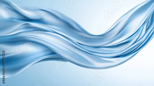 A blue satin fabric blowing in the wind on a blue background