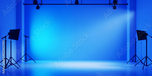 A blue studio setup with lighting equipment and a backdrop for photography use case on transparent background