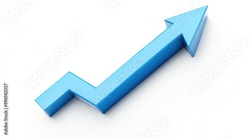 A blue upward arrow symbolizing financial growth, isolated on a white background