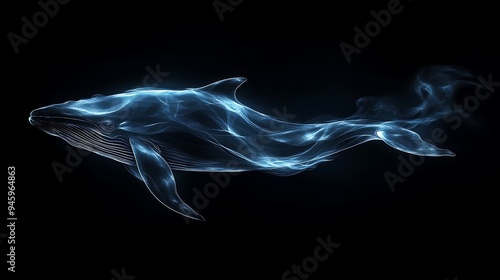 A Blue Whale Silhouette Formed by Abstract Lines of Light on a Black Background