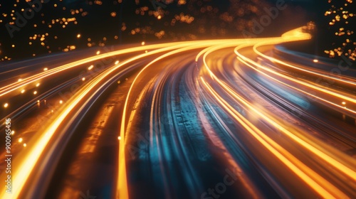 A blurred image of a highway with cars and lights at night