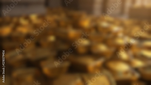 A blurred image showcasing a large pile of gold bars, suggesting wealth and treasure.