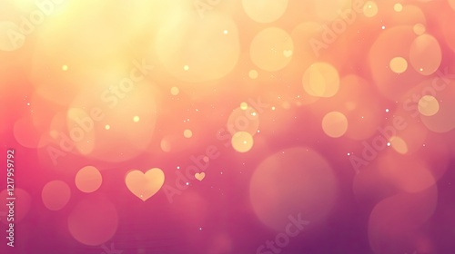 A blurred Valentine's Day background vector with bokeh heart lights and a glowing pink and orange gradient design.