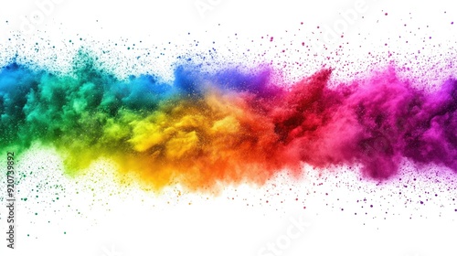 A bold and colorful explosion of rainbow powder on a white background, celebrating pride and diversity with a dynamic splash.