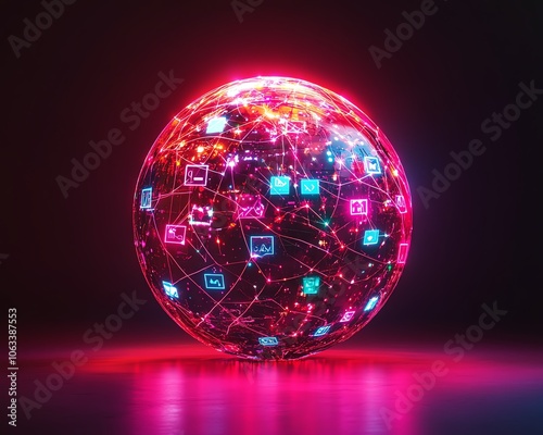 A bold and vibrant illustration of a red linked sphere adorned with social media icons, encapsulating the essence of digital communication and networking technologies