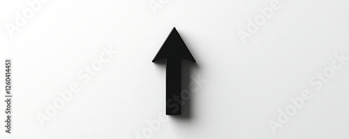 A bold black arrow with a sharp triangular head is centered on a clean white background, symbolizing direction, movement, and progress in a minimalistic design